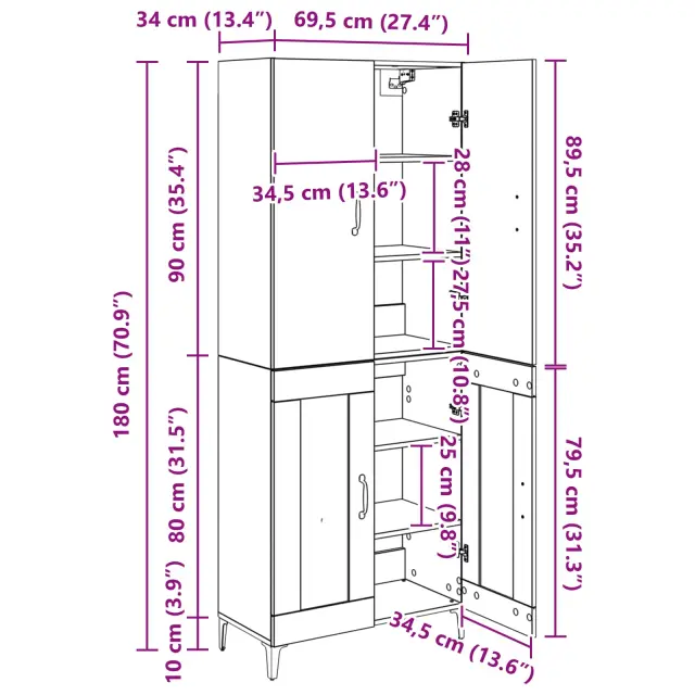 vidaXL Visok predalnik Črna Orehovina 69,5 x 34 x 180 cm
