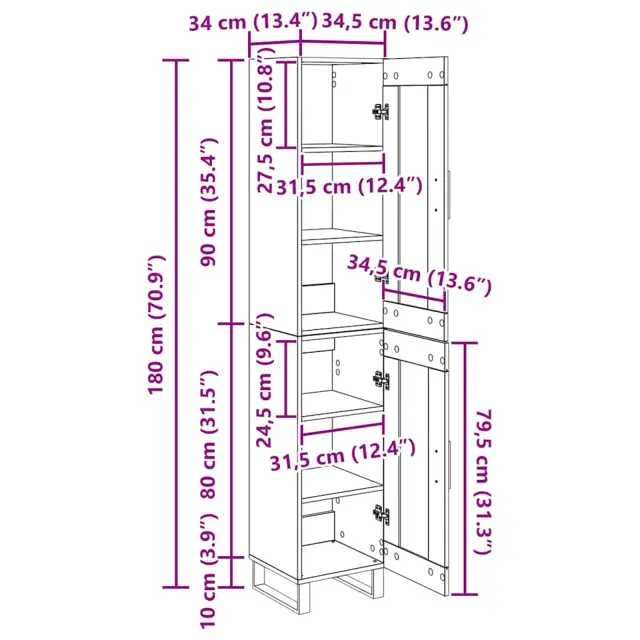 vidaXL Visok predalnik Črna Orehovina 69,5 x 34 x 180 cm