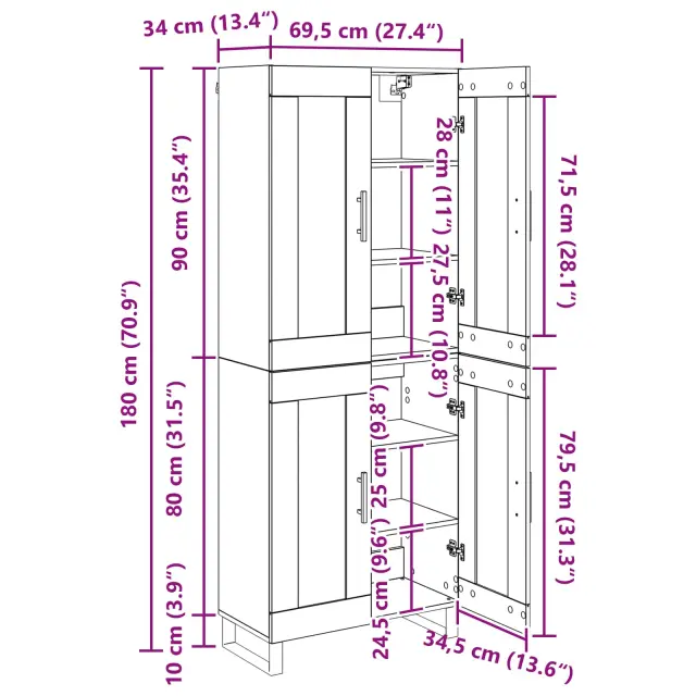 vidaXL Visok predalnik Črna Orehovina 69,5 x 34 x 180 cm