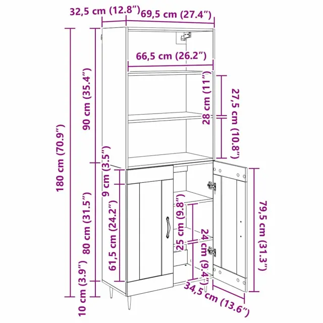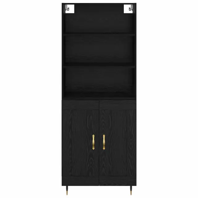 vidaXL Visok predalnik Črni hrast 69,5 x 34 x 180 cm Konstruiran les