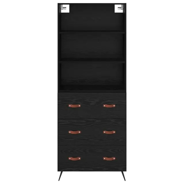 vidaXL Visok predalnik Črni hrast 69,5 x 34 x 180 cm Konstruiran les