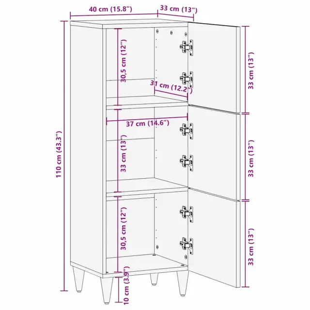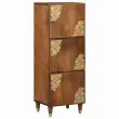 Ta visok šifoner je stilska rešitev za shranjevanje, idealna za dnevne sobe in jedilnice. Z moderno zasnovo, čistimi linijami in lepo teksturirano površino dodaja eleganco vsakemu prostoru. Narejen iz trdnega mangovega lesa, povezuje lepoto in praktičnost ter ponuja obširno shranjevanje.