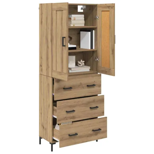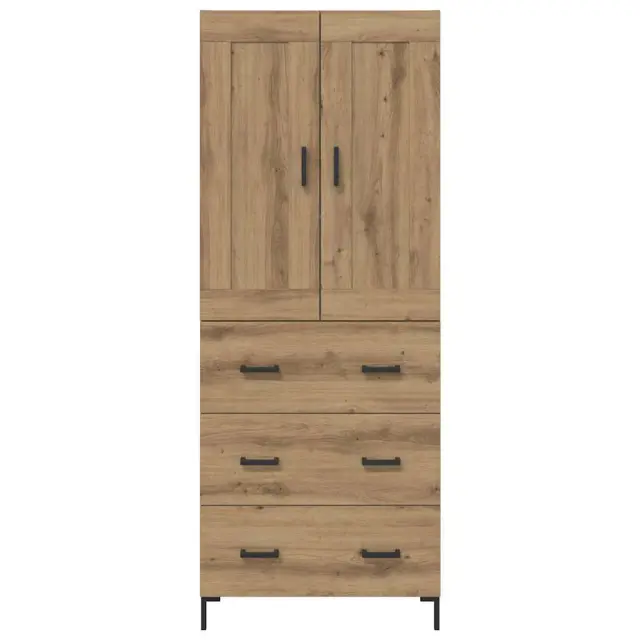 vidaXL Visok predalnik s predalom 2 pcs Umetni hrast Konstruiran les