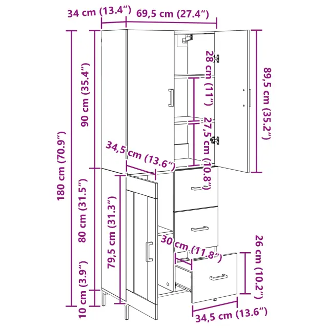 • 1 x Top za visok omarico: 69,5 x 34 x 90 cm