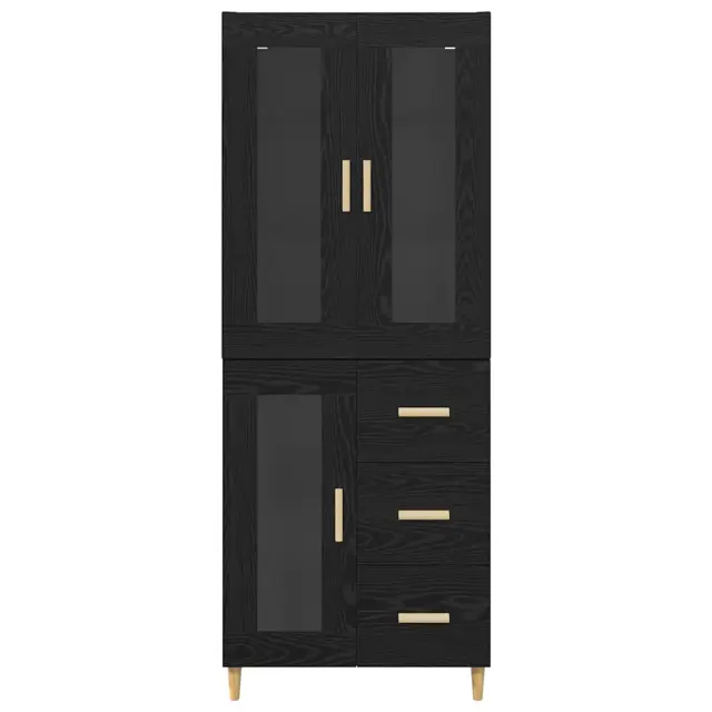 vidaXL Visok predalnik s predalom Črna Orehovina 69,5 x 34 x 180 cm