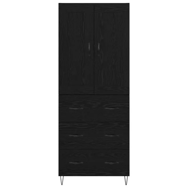 vidaXL Visok predalnik s predalom Črna Orehovina 69,5 x 34 x 180 cm