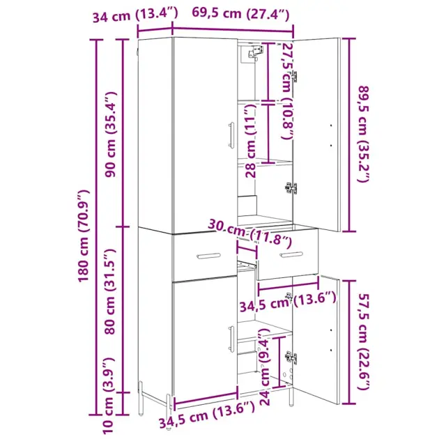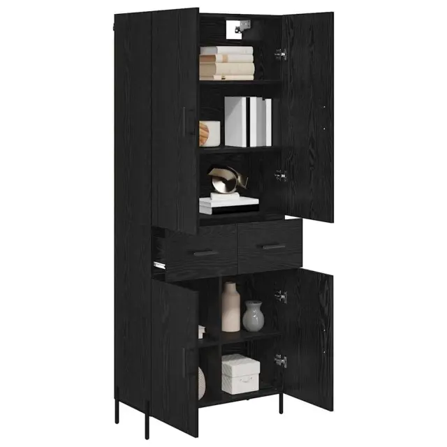 vidaXL Visok predalnik s predalom Črna Orehovina 69,5 x 34 x 180 cm