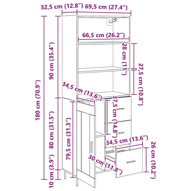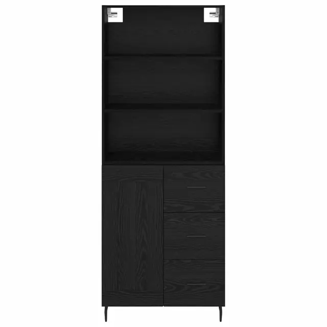 vidaXL Visok predalnik s predalom Črna Orehovina 69,5 x 34 x 180 cm