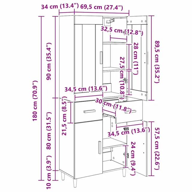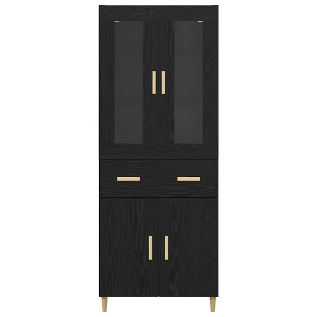 vidaXL Visok predalnik s predalom Črna Orehovina 69,5 x 34 x 180 cm