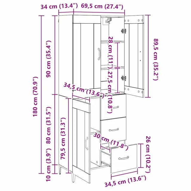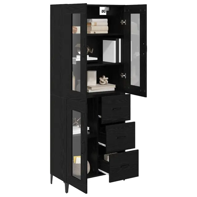 vidaXL Visok predalnik s predalom Črna Orehovina 69,5 x 34 x 180 cm