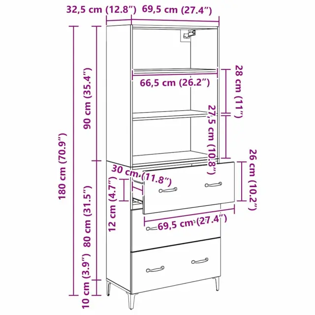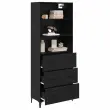 vidaXL Visok predalnik s predalom Črna Orehovina 69,5 x 34 x 180 cm