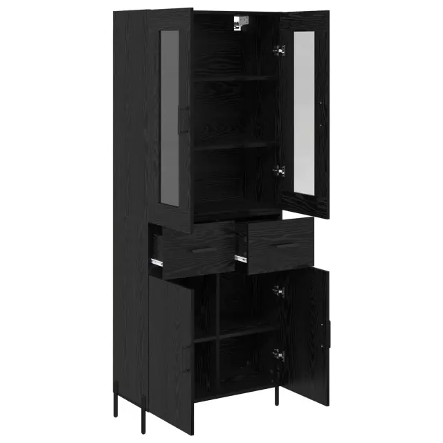 vidaXL Visok predalnik s predalom Črna Orehovina 69,5 x 34 x 180 cm