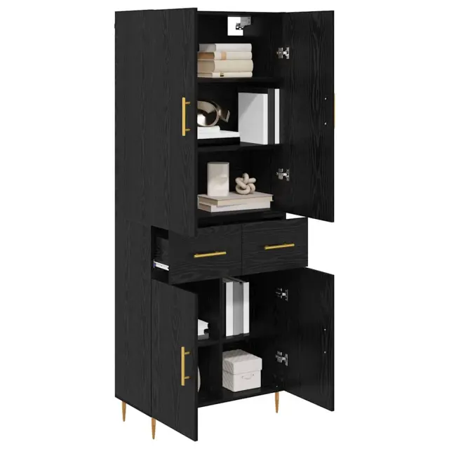 vidaXL Visok predalnik s predalom Črna Orehovina 69,5 x 34 x 180 cm