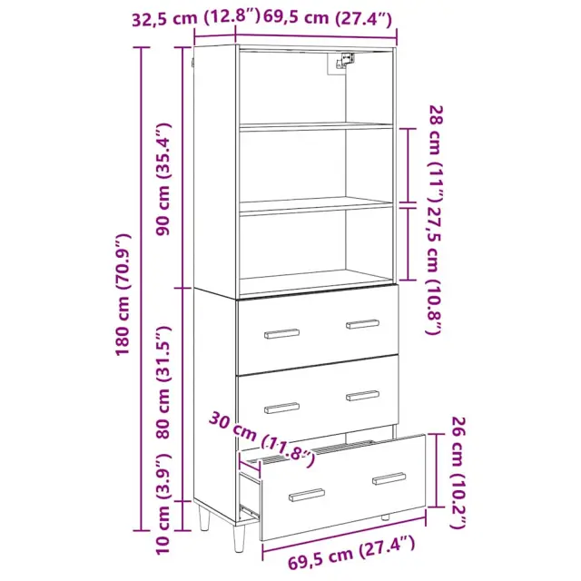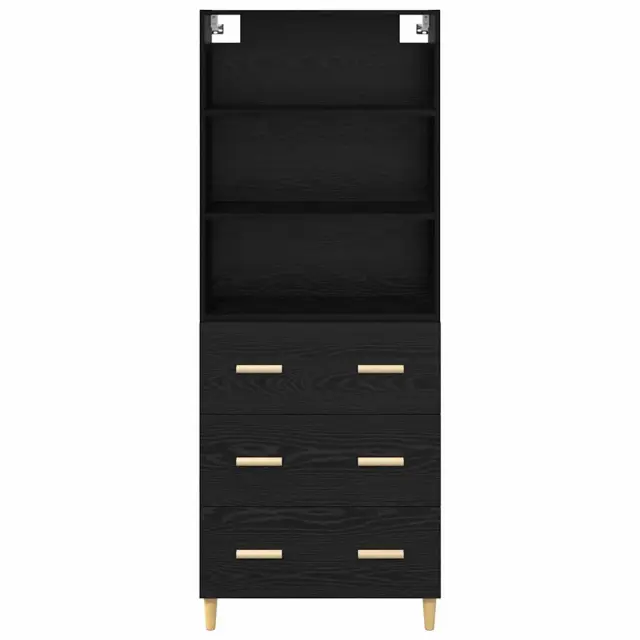 vidaXL Visok predalnik s predalom Črna Orehovina 69,5 x 34 x 180 cm