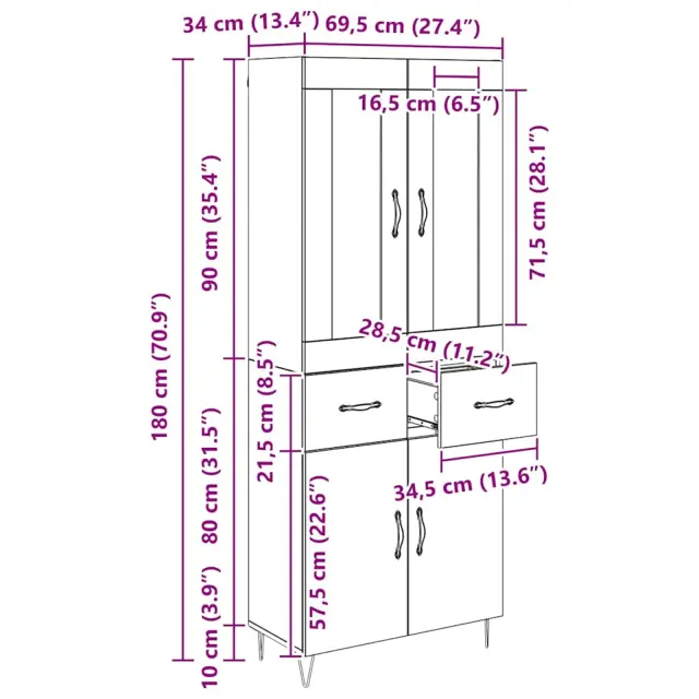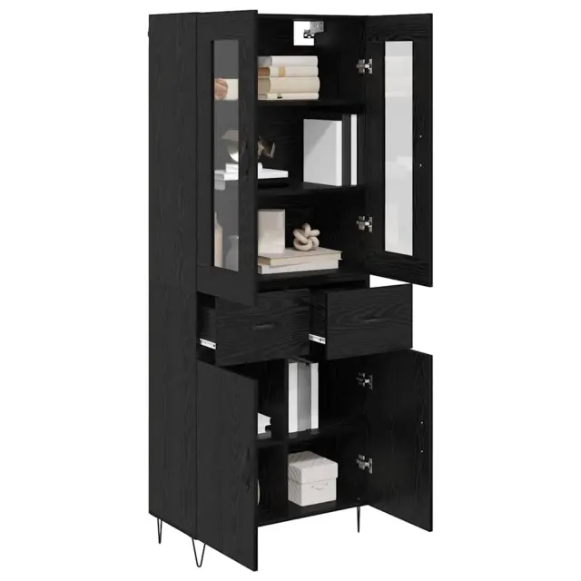 vidaXL Visok predalnik s predalom Črna Orehovina 69,5 x 34 x 180 cm