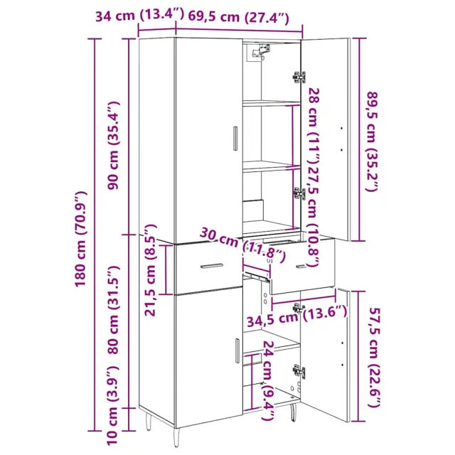 vidaXL Visok predalnik s predalom Star les 69,5 x 34 x 180 cm