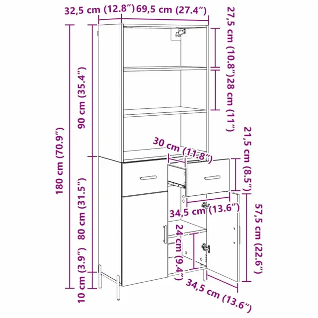vidaXL Visok predalnik s predalom Umetni hrast 69,5 x 32,5 x 180 cm