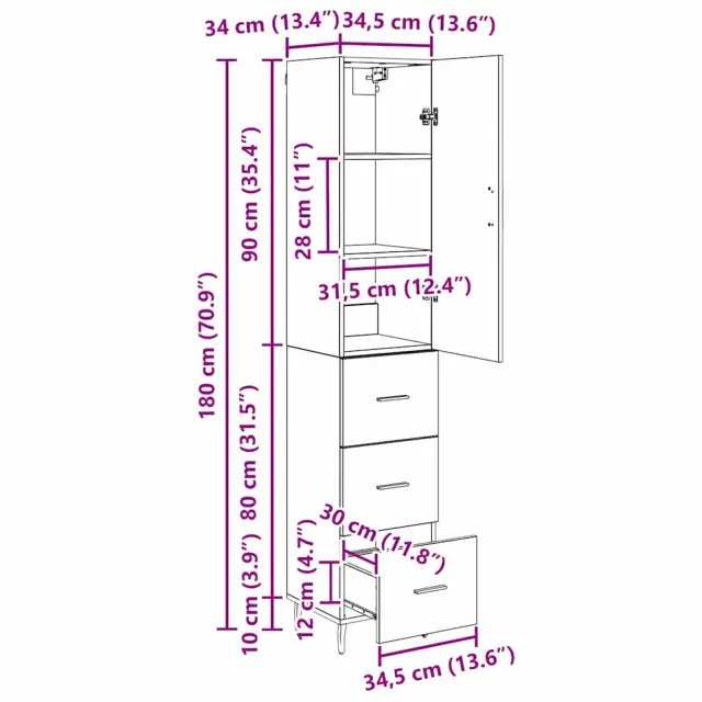 vidaXL Visok predalnik Star les 34,5 x 34 x 180 cm Konstruiran les