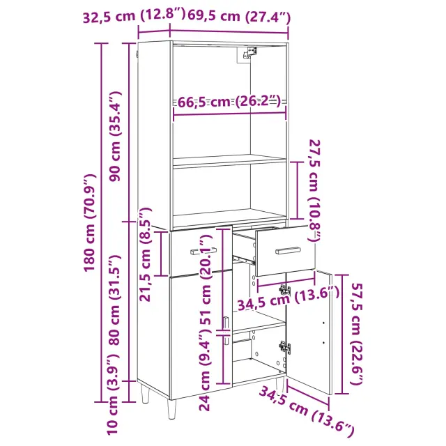 vidaXL Visok predalnik Star les 69,5 x 32,5 x 180 cm Konstruiran les