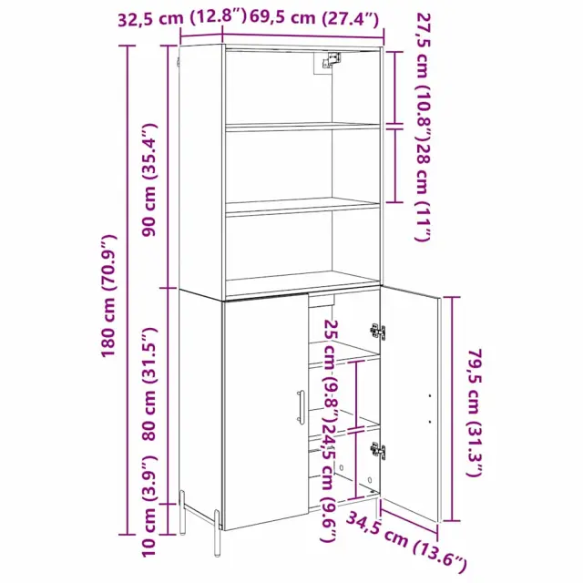 vidaXL Visok predalnik Star les 69,5 x 32,5 x 180 cm Konstruiran les