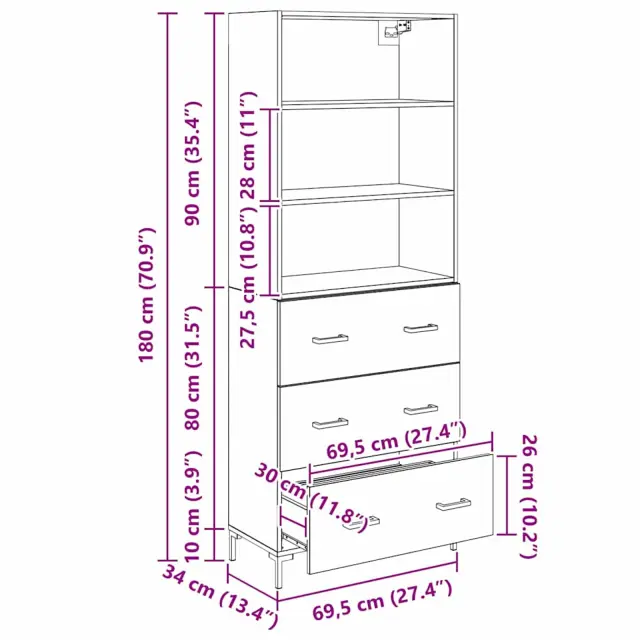 vidaXL Visok predalnik Star les 69,5 x 34 x 180 cm Konstruiran les