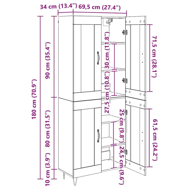 vidaXL Visok predalnik Star les 69,5 x 34 x 180 cm Konstruiran les