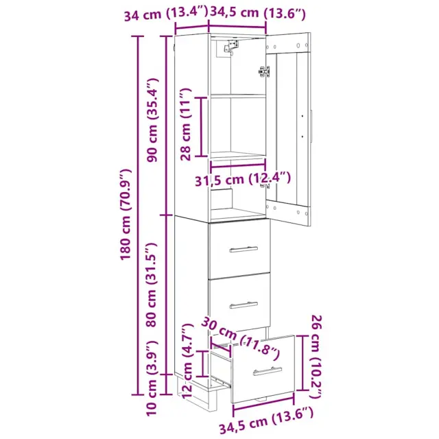 vidaXL Visok predalnik Star les 69,5 x 34 x 180 cm Konstruiran les