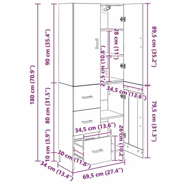 vidaXL Visok predalnik Star les 69,5 x 34 x 180 cm Konstruiran les