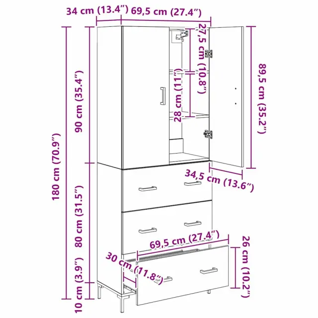 vidaXL Visok predalnik Star les 69,5 x 34 x 180 cm Konstruiran les