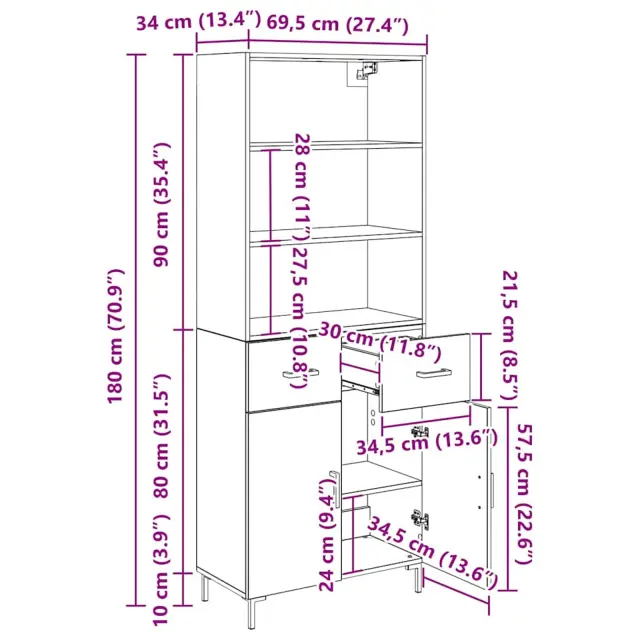 vidaXL Visok predalnik Star les 69,5 x 34 x 180 cm Konstruiran les