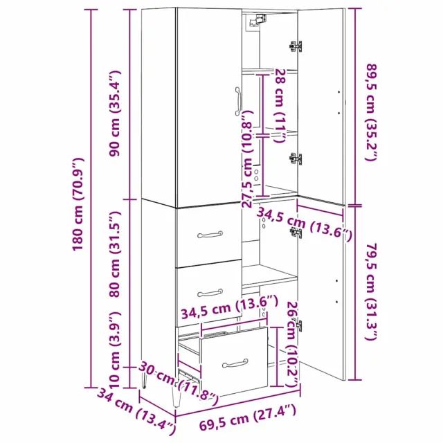vidaXL Visok predalnik Star les 69,5 x 34 x 180 cm Konstruiran les