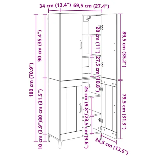 vidaXL Visok predalnik Star les 69,5 x 34 x 180 cm Konstruiran les