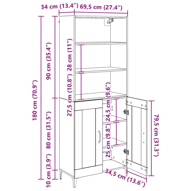 vidaXL Visok predalnik Star les 69,5 x 34 x 180 cm Konstruiran les