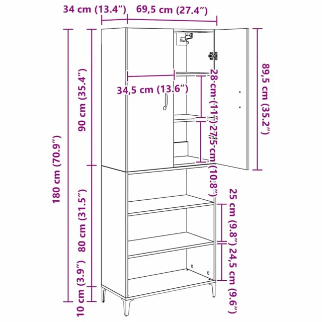 vidaXL Visok predalnik Star les 69,5 x 34 x 180 cm Konstruiran les