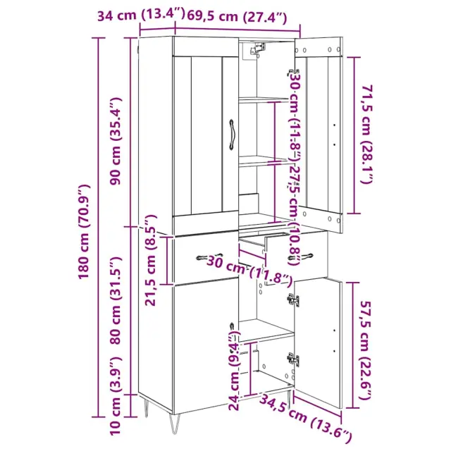 vidaXL Visok predalnik Star les 69,5 x 34 x 180 cm Konstruiran les