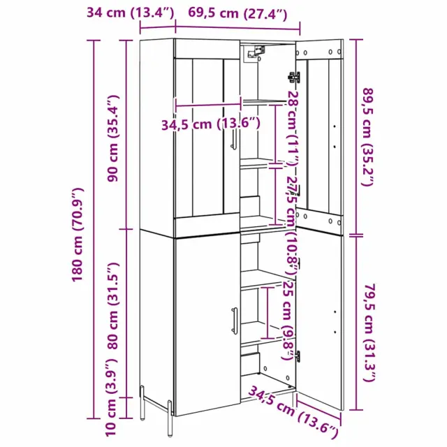 vidaXL Visok predalnik Star les 69,5 x 34 x 180 cm Konstruiran les