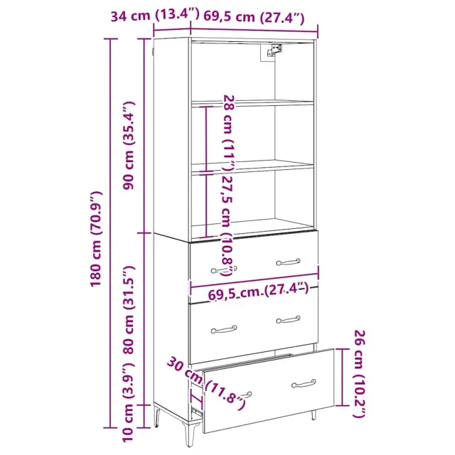 vidaXL Visok predalnik Star les 69,5 x 34 x 180 cm Konstruiran les