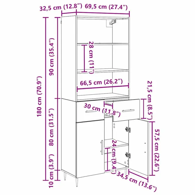 vidaXL Visok predalnik Star les 69,5 x 34 x 180 cm Konstruiran les