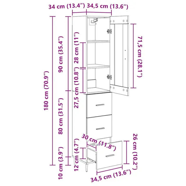 vidaXL Visok predalnik Umetni hrast 34,5 x 34 x 180 cm Konstruiran les