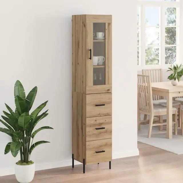 vidaXL Visok predalnik Umetni hrast 34,5 x 34 x 180 cm Konstruiran les