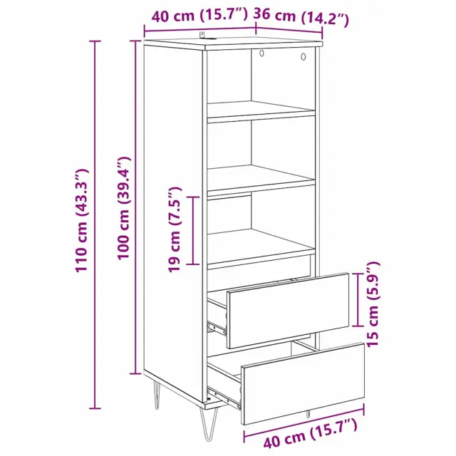 vidaXL Visok predalnik Umetni hrast 40 x 36 x 110 cm Konstruiran les