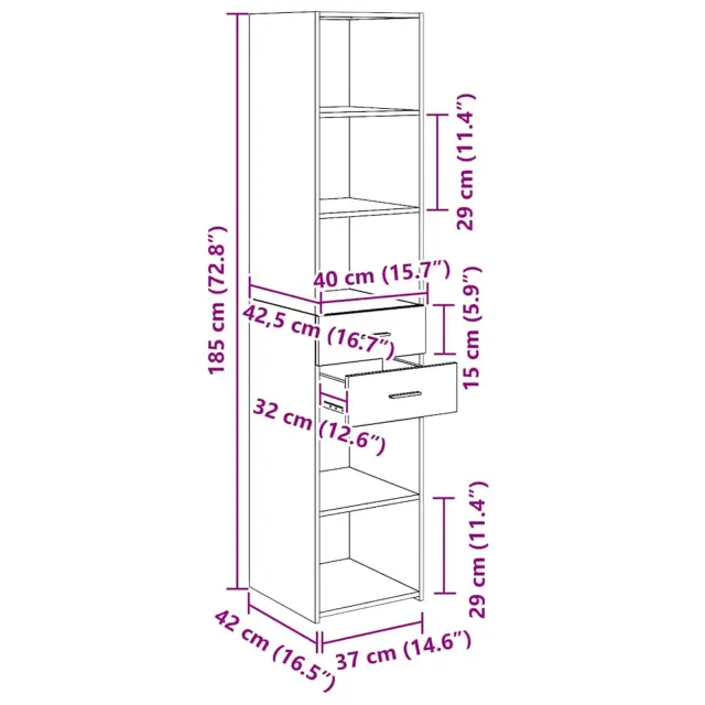 vidaXL Visok predalnik Umetni hrast 40 x 42,5 x 185 cm Konstruiran les