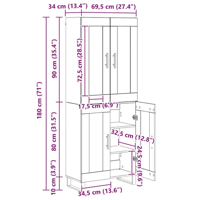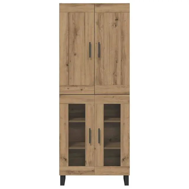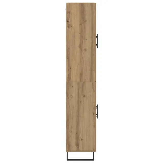 Ta moderni highboard prinaša svež in sodoben pridih v vsak jedilni ali dnevni prostor. Zasnovan je z mislijo na enostavnost in funkcionalnost, združuje elegantne linije z robustno konstrukcijo, kar ga dela idealno izbiro za sodobno življenje. Highboard ponuja police in tečajna vrata, kar pomeni ogromno možnosti shranjevanja za vse, od jedilnega pribora do dekoracij v dnevni sobi. Njegova estetska privlačnost izvira iz minimalističnega sloga z črnimi kovinskimi ročaji in kvadratnimi nogami, ki dopolnjujejo njegovo preprosto obliko.