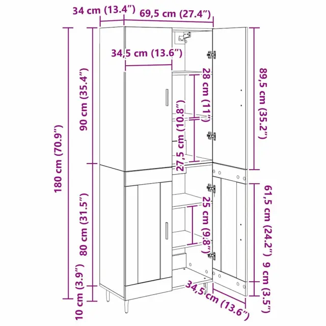 vidaXL Visok predalnik Umetni hrast 69,5 x 34 x 180 cm