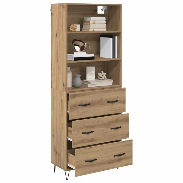 vidaXL Visok predalnik Umetni hrast 69,5 x 34 x 180 cm Konstruiran les