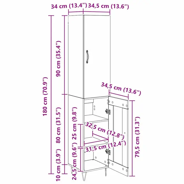 vidaXL Visok predalnik Umetni hrast 69,5 x 34 x 180 cm Konstruiran les