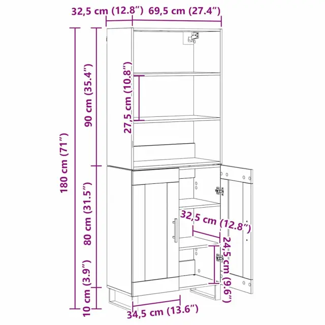 vidaXL Visok predalnik Umetni hrast 69,5 x 34 x 180 cm Konstruiran les