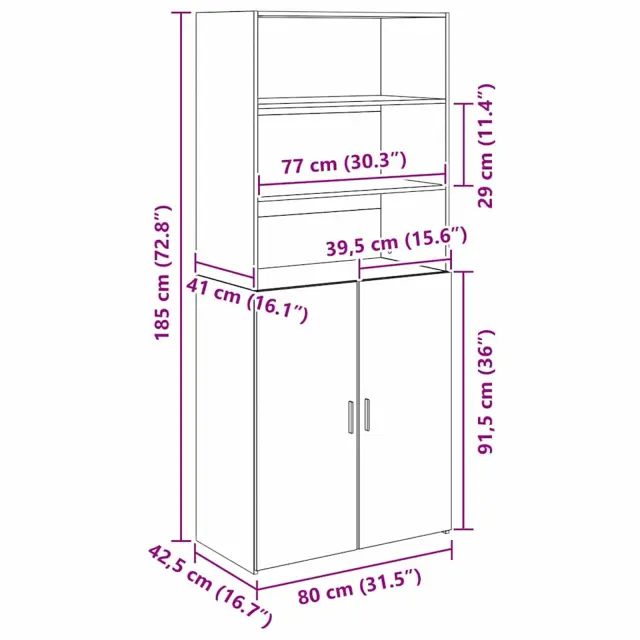 vidaXL Visok predalnik Umetni hrast 80 x 42,5 x 185 cm Konstruiran les
