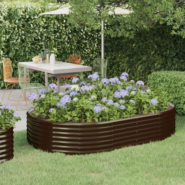 vidaXL Visoka greda iz prašno premazanega jekla 214x140x36 cm rjava