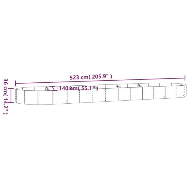 vidaXL Visoka greda iz prašno premazanega jekla 523x140x36 cm rjava